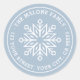 Winterurlaub-Rückkehradresse-Label mit weißer, moderner, minimaler Schneeflocke und Name und Adresse auf staubblauem Hintergrund. Alle Farben sind anpassbar.