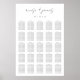 Modernes und minimales Gästekarten für Hochzeiten bietet Platz für bis zu 15 Tische mit 10 oder 250 Personen. Ihre Namen und Ihr Hochzeitsdatum oder Veranstaltungsdatum erscheinen oben in weichem schwarzem Schriftsatz.