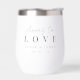 Ein wunderschönes, minimalistisches Hochzeitsdesign, das auf der Typografie basiert und "Beifall zur Liebe", Ihre Namen und Ihr Hochzeitsdatum in einer eleganten Kombination aus handgeschriebener Schrift und klassischer Serifenschrift darstellt.