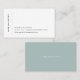 Modernes Design mit elegantem Pop und minimalistischem Flair. Die Visitenkarten enthalten Ihren Namen entlang der links Seite, mit drei Kontaktlinien rechts, die durch eine dünne schlingerne grüne Linie geteilt werden. Die Karten werden in solides, staubiges Salbeigrün umgeschaltet, wobei der Name oder die Wahl des benutzerdefinierten Textes in der modernen weißen Schrift zentriert ist.