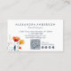 Mit dieser schicken und beruflichen, blumengeschmückten Visitenkarte machen Sie einen bleibenden Eindruck. Diese Karte zeichnet sich durch ihre Kreativität und Eleganz aus und zeichnet sich durch ein minimalistisches Design aus, das durch elegante Aquarellfarben-Orangenblumenbilder hervorgehoben wird. Mit sauberer Typografie und viel Platz für wichtige Kontaktdaten können sich Ihre Kunden problemlos mit Ihnen verbinden. Diese individuell gestaltbare Visitenkarte eignet sich perfekt für Floristen, Veranstaltungsplaner oder kreative Profis der Blumenindustrie. Die Einbindung eines QR-Codes verbessert seine moderne Funktionalität und ermöglicht den Kunden den einfachen Zugriff auf Ihre Website oder soziale Medien. Das subtile Blumenmotiv sorgt für eine persönliche, stilvolle Touch und sorgt gleichzeitig für Professionalität. Diese Karte eignet sich ideal für Netzwerkveranstaltungen, Kundentreffen oder Hochzeitsexpos und hilft Ihnen dabei, sich von der Kunst zu überzeugen. Langlebiger, hochwertiger Cardstock sorgt dafür, dass er ein unvergessliches Stück in den Händen Ihrer Kunden bleibt.