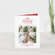 Moderne minimale Weihnachten rustikale stilvolle Multi-Foto-Urlaubskarte. Mit modernem handgezeichneten Text und Bäumen. Die Farbe des roten Backers kann angepasst werden.
