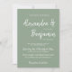 Elegante trendige Typografie-Skripte stilvolle lässige Hochzeitseinladung in schlichter, grün-weißer Handschrift mit Kalligraphie großer Braut- und Bräutigam-Namen. +++++++++++++++++++ Sie können die Farben von Text und Hintergrund ändern, nachdem Sie unter PERSONALISIEREN DIESES VORLAGENmenü die Option "EDIT USING DESIGN TOOL" ausgewählt haben. +++++++++++ Die Einladung ist für jede Saison - Frühjahr, Sommer, Herbst, Winter - Hochzeitsfeier und Empfang geeignet.