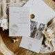 Moderne Minimalistisch Line Gezeichnet Protea Wedding Einladung Einfache und moderne Hochzeitseinladung mit einer braunen Linie gezeichnet Protea auf einem hellgrauen Hintergrund. Diese minimalistische Blumen-Einladung beinhaltet auch das Foto, den Text und das zeichn auf der Rückseite und ist ideal für Paare, die eine einfache, moderne Blumenhochzeit wünschen.