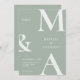 Moderne Minimalistisch Sage Green Wedding Einladung. Enthält fett formatierte Monogramm-Typografie und minimales grafisches Design. Personalisieren Sie Text mit allen Details Ihres besonderen Tages.