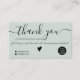 Moderner minimalistischer schwarz und weich pastellgrün Geschäftsauftrag danke. Fügen Sie Ihre sozialen Medien hinzu. Mit einem eleganten Script-Schriftart können Sie alle Farbenvarianten bearbeiten, Ihr Logo hinzufügen.