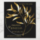 Modernes Minimalistisches Black and Gold Leaf Wedding Wine Label Modernes, Minimalistisches Hochzeitsflaschenlabel. Ein Ensemble aus Goldblättern auf einem klassischen schwarzen Hintergrund. Personalisieren Sie Ihre Veranstaltungsdetails.