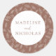 Elegante botanische Hochzeitsaufkleber mit braunen Schriftzeichen und weich weißem Blattwerk. Diese personalisierten Hochzeitsaufkleber eignen sich hervorragend zum Versiegeln von Einladungsumschlägen oder Liebestaschen, die Ihrem Hochzeitsgeschirr eine natürliche und erdige Touch verleihen. Ideal für rustikale Hochzeitsthemen, Herbst oder neutrale Hochzeitsthemen. Voll anpassbar für den Anzug Ihres besonderen Tages.
