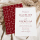 Elegante, moderne Einladungen für Hochzeiten, die Ihre Hochzeitsdetails in bordeauxroter Schrift mit handgeschriebener Kalligrafie unterstreichen. Die einfachen Einladungen zum Hochzeitsfeiern haben einen weißen Hintergrund. Die bordeauxfarbene und weiße Hochzeit laden zum Verweilen ein, um ein schönes Laub-Muster zu zeigen. Die Einladungen sind perfekt für Frühjahr- und Sommergarten Hochzeiten.