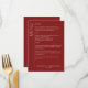 Moderne Minimalistische Crimson Red Wedding Rezept Menükarte