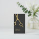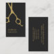 Moderne, elegante, vollständig anpassbare Visitenkartenvorlage mit goldenen Schere-Imitaten. Perfekt für Haarstylisten, Friseursalons. Minimalistisches Design.