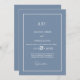 Diese wunderschönen modernen Einladungen mit dem dusy-blauen Monogramm haben eine traditionelle Grenze und einen einfachen schwarz-weißen minimalistischen Textstil. Sie können sie personalisieren, indem Sie ein Monogramm oder Ihre Initialen hinzufügen.