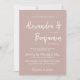 Elegante trendige Typografie-Skripte stilvolle lässige Hochzeitseinladung in schlichter, staubiger Rose, rot und weiß, mit großen Braut- und Bräutigam-Kalligraphie. +++++++++++++++++++ Sie können die Farben von Text und Hintergrund ändern, nachdem Sie unter PERSONALISIEREN DIESES VORLAGENmenü die Option "EDIT USING DESIGN TOOL" ausgewählt haben. ++++++++++++ Die Einladung ist für Frühjahr, Sommer, Herbst, Winterhochzeiten und Empfang geeignet.