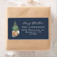 Modernes minimales Blattwerk Weihnachtsbaum Jahr, um sich an Drehbuch Weihnachten Weihnachtsrückgabe-Label zu erinnern. Handgemalte Kiefernbäume, minimales Blattwerk und ein moderner rustikaler Korb verleihen dieser Ferienkarte ein luxuriöses Ambiente. In klassischem Marineblau, Grüntönen, Braun und Grauen.