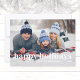 Personalisierte Urlaubskarte. Einfache, moderne, minimalistische Weihnachtskartenvorlage aus einem Foto bietet den Text "Happy Houses" in Weiß, individuelle Name und Foto in der Familie. Backside mit leicht anzupassen saisonale Grußtext in elegantem silbergrauen. Machen Sie es sich selbst und teilen Sie Ihren Lieben herzliche Urlaubswünsche. © y.BEE PAPERIE #Zazzle Made #christmascardtemplate #holidayphotocards #christmasphotocards