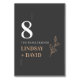 Mit dieser einfach und modern gestalteten Tischnummer-Karte, die einen sauberen Schriftart auf Holzkohle-Hintergrund bietet, laden Sie zu Ihrer Hochzeit ein. Diese Einladung ist perfekt für jede Jahreszeit. Für eine erweiterte Anpassung dieses Designs, z.B. das Ändern des Layouts, des Schriftartes oder der Textgröße, klicken Sie bitte auf den obigen Button "KENNEN". Bitte kontaktieren Sie mich für weitere Fragen!