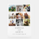 Erstellen Sie Ihr eigenes personalisiertes Hochzeitsschild, auf dem Sie einige Ihrer Lieblingsmomente gemeinsam präsentieren. Dieses Banner-Zeichen verfügt über ein modernes 9 Foto quadratisches Kollagengitter neben individuellen Namen, Hochzeitstag, Ort und anderen Texten in eleganter minimalistischer Typografie.