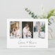 Dieses moderne Design-Template verfügt über das Foto von drei Paaren. Sie können Fotos, Datum, Namen und andere Details hinzufügen, wenn Sie möchten. Die Rückseite der Karte ist weiß, aber Sie haben die Möglichkeit, sie an Ihr Foto anzupassen, indem Sie einfach auf "Bearbeiten mit dem Designwerkzeug" klicken.