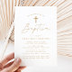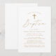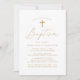 Die einfache Taufeinladung enthält ein lässiges Goldkalligraphieskript mit weißem Hintergrund für ein Design, das sich perfekt für eine moderne Baby-Taufe eignet. Personalisieren Sie die eleganten Taufe-Einladungen mit dem Namen Ihres Kindes und den religiösen Veranstaltungsdetails unten. Die Rückseite der Einladung bietet Platz für zusätzlichen Text und Fotos.