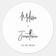 Modernes Minimalistisches handgeschriebenes Script Schwarz und Weiß, klassischer Rundsticker für Hochzeiten.