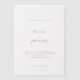 Die Einladung zur Hochzeit ist ein sauberes und minimalistisches Design mit weißem Hintergrund, moderner Typografie und handgeschriebenem Schriftbild für die Namen der Ehepaare. Die Vorderseite betont Einfachheit und Eleganz