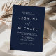 Einfache, elegante Einladungen mit einer weißen, handgeschriebenen Schrift, kombiniert mit modernen Schriften vor einem marinen Hintergrund. Personalisieren Sie die minimalistische Hochzeitseinladung mit Ihrem Namen und Ihre Hochzeitsdetails. Die schicke Hochzeitsfeier der Marine ist die perfekte Wahl für moderne Hochzeiten.