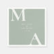 Moderne Hochzeitsnapkins mit Ihren Monogramm-Initialen und Namen in minimalistischer Typografie auf Salbei-Grün.