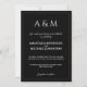 Eine moderne, minimalistische Hochzeitseinladungskarte in Schwarzweiß mit einem sauberen und eleganten Design. Die Karte verfügt über subtile dünne Rahmen auf beiden Seiten. Beide Seiten enthalten das Monogramm des Paares, das bei Bedarf leicht entfernt oder angepasst werden kann. Der schwarze Hintergrund und das einfache Layout geben ihr einen zeitlosen, stilvollen und anspruchsvollen Look, perfekt für eine moderne Hochzeit.