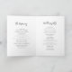 Modernes, minimalistisches Hochzeitsprogramm mit handgeschriebenen Schriften und stilvollen Sans Serif Schriftart Details, in Holzkohle schwarz-weiß, einfach und elegant. Ideal für moderne klassische Hochzeit, einfache formelle Hochzeit, elegante minimalistische Hochzeit. Sehen Sie sich alle passenden Stücke in der Sammlung an.