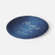 Schön dunkelblaue Farbtöne schaffen eine Textur wie Wasser auf diesem Abend Hochzeitspapier. Perfekte Dekoration am See oder am Wasser für eine Zeremonie am See mit Blick auf das Wasser. Elegantes, weißes, minimalistisches Skript mit Ihren Details über einen Verlauf, der sich anfühlt, als ob Sie unter Wasser schwimmen.