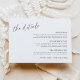 Fügen Sie Ihre Hochzeitseinladungssuite mit dieser minimalistischen Detailschachtel-Karte ganz wesentliche Informationen hinzu. Diese Karte eignet sich hervorragend, um zusätzliche Details wie Veranstaltungsorte, Unterkunft, Transport, Kleidercode oder andere Veranstaltungsspezifikationen zu teilen. Sie ist leicht an Ihre Bedürfnisse anzupassen, um Ihre Anzüge zu erfüllen. Es ist eine elegante und einfache Art, Ihre Gäste informiert behalten und eine reibungslose Feier zu gewährleisten.