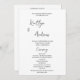 Black Delicate-handgeschriebenes Hochzeitsprogramm Dieses einfache, schwarz-delikate, handschriftlich druckbare Hochzeitsprogramm ist perfekt für eine moderne Hochzeit. Das schlichte romantische Design zeichnet sich durch eine schöne und elegante schwarze Typografie auf weißem Hintergrund aus und sorgt für ein sauberes und einfaches Aussehen. Es beinhaltet die Namen der Braut und des Bräutigams, das Hochzeitstag und den Veranstaltungsort, Dankeschön-Nachricht, Dienstordnung, Hochzeitsfeier und ein optionales "In Loving Memory"-Denkmal.