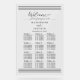 Ein einfaches minimalistisches Design mit drei einfachen Linien auf und ab gelingt es immer noch, einen dramatischen Hintergrund für dieses moderne "Welcome" Seating Chart Hochzeitsdesign zu schaffen. Der Text und die Zeilen sind schwarz auf einem klaren Hintergrund. Skripttext kann nur vom Designer geändert werden. Composite Design von Holiday Hearts Designs (Rechte vorbehalten).