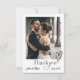 Drücken Sie Ihre herzliche Dankbarkeit mit der mühelosen Eleganz dieser modernen minimalistischen Kalligrafie-Script-Foto-Hochzeits-Dankeskarte aus. Diese Gestaltung vereint zeitgenössische Trends perfekt mit zeitloser Sentimentalität und ist somit der ultimative Abschluss Ihrer Feier, der sicherstellt, dass Ihre Freunde und Familie sich wirklich geschätzt fühlen.