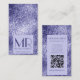 Modernes minimalistisches Design mit texturierter Imitation metallischer Folie Mitternacht lila Hintergrund. Eine berufliche, elegante Karte mit Monogramm, QR-Code und trendiger Typografie. Perfekt für Designer, Fotografen, Make-up Künstler, Kosmetologen, Friseur und mehr! Mit dem Vorlagenfeld können Sie ganz einfach Ihre eigenen Daten hinzufügen.