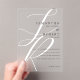 Erstellen Sie Ihre eigene moderne, minimalistische Acrylhochzeit-Einladung. Dieses Einladende Template zeichnet sich durch ein minimales Design mit elegantem Hintergrund und Typografie aus, die Sie mit all Ihren Details personalisiert machen können.