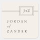 Mit einem schlichten minimalistischen Stil und zeitgenössischem Flair präsentiert sich dieses Hochzeitsaufkleber-Design mit den Monogramm-Initialen der Braut und des Bräutigams in einem horizontalen Rahmen, der sich an der oberen rechten Seite des Designs befindet. Die Textvorlage enthält auch die Vornamen der Braut und des Bräutigams in prominentem elegantem Text. Dieser Aufkleber koordiniert mit einer Hochzeitssuite in einer stilvollen und dennoch schlichten Art und Weise und ergänzt Ihr minimalistisches Hochzeitsthema. Das raffinierte, beige-schwarze Elfenbein-Farbschema ist eine schöne, neutrale Wahl für Hochzeiten zu jeder Jahreszeit.