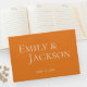 Moderne Minimalistische Orange White Wedding Gästebuch