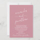 Moderne Minimalistische Pastel Wedding Invitation Diese individuell gestaltbare Einladungskarte für Hochzeiten bietet minimalistische Typografie auf einem wilden Rose-Rosa Hintergrund. Für eine erweiterte Anpassung dieses Designs, z.B. das Ändern des Layouts, des Schriftartes oder der Textgröße, klicken Sie bitte auf den obigen Button "KENNEN". Bitte kontaktieren Sie uns für weitere Koordinierungsaufgaben (Save the Date, Tischnummern, Foto-Backdrops, etc.) unter reviva.designs@gmail.com