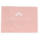 Minimalistisch Pastellrosa Gratulationstasche mit weißem Herzklopfen. Hübsches, gürtelweiches Pastellrosa. Perfekt für ein Gratulationsgeschenk für jeden besonderen Tag oder Anlass, Abschluss, Jubiläum oder Geburtstag. Moderne Minimalistische Pastel Pink Herzlichen Glückwunsch Große Geschenktasche. Sehen Sie sich unsere Kollektion für schönere Geschenkideen an.