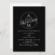 Elegante, moderne, minimalistische, einfache schwarze Hochzeitseinladung mit einzigartigem Monogramm und QR Code hinten.