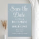 Minimalistisch, staubblau, elegant, modern, qr code Wedding Save the Date. Bitte personalisieren Sie es mit Ihren Daten und fügen Sie Ihren eigenen qr Code hinzu.