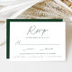 Einfache, elegante Hochzeitskarten mit einem grünen, handgeschriebenen Skript, das mit modernen Schriften auf weißem Hintergrund vermischt wird. Personalisieren Sie die minimalistischen Hochzeitskarten mit Ihrem Wunschtermin, akzeptieren/verweigern Sie den Wortlaut und wählen Sie das Essen aus. Die eleganten, grünen Hochzeitskarten sind die perfekte Wahl für moderne Hochzeiten.