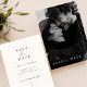 Vorstellung unserer modernen Minimalistischen Save the Date Einladung. Dieses moderne, zweiseitige Design besticht durch ein wunderschönes Foto eines Ehepaares. Ideal für elegante Hochzeiten am Strand, kombiniert es Einfachheit und Romantik. Mit dieser modernen, minimalistischen Karte stellen Sie sicher, dass Ihr besonderer Termin herausragt.