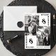 Mit dieser modernen, minimalistischen Zwei-Foto-Save the Date-Karte verkünden Sie Ihren besonderen Tag im Stil. Dieses Design mit klaren Linien und feinem Typografie ermöglicht es Ihnen, zwei Ihrer Lieblings-Verlobung-Fotos zu präsentieren, die durch eine zeitgenössische Schwarz-Weiß-Farbpalette hervorgehoben werden. Mit der eleganten Platzierung der Namen und des Datums des Paares passt diese Karte perfekt auf Eleganz und Einfachheit ab. Ideal für Paare, die ein zeitloses, schlankes und personalisiertes, zeitgemäßes Design suchen.