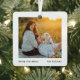 Feiern Sie mit einem modernen, minimalistischen Metalldekor nach Maß 2 Foto die Urlaubsfreuden. Die Bilder und der gesamte Text auf dieser Vorlage sind einfach zu personalisieren und können auf Vorder- und Rückseite unterschiedlich oder gleich sein. Es kann jede Formulierung enthalten, wie zum Beispiel frohe Weihnachten, glückliche Feiertage, Erste Weihnachten, Best Friends, Kinder & Familiennamen, etc. Das Schwarz-Weiß-Quadrat-Design besticht durch eine stilvolle Vintage Schreibmaschinentypografie und zwei Fotos Ihrer Wahl. Dieser einzigartige Sake fügt den Xmas Zuhause-Dekorationen eine elegante, kundenspezifische Touch hinzu.