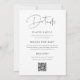Erleben Sie die moderne und minimale Babydusche in klassischem Schwarz und Weiß. Einfache Design-Features wie "baby sprinkle" in lässiger handgeschriebener Schrift, darunter Ihre Veranstaltungsdetails in modernen Softash-Schwarz-Schrift. Auf der Rückseite finden Sie drei eigene Felder für weitere Details, die mit einer Windelverlosung, Buchanfrage und QR-Code für die Registrierung angezeigt werden.