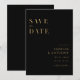 Moderne Hochzeit bewahrt die Datteleinladung mit elegantem, minimalistischem Typografie-Design in Schwarz und Gold. Einfach mit all Ihren Informationen personalisieren, um eine individuelle Hochzeit zu ermöglichen, speichern Sie die Datumskarten.