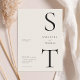 Moderne Minimalistische Schwarz und Elfenbeinheirat Einladung. Enthält Monogramm Typografie und minimales grafisches Design. Personalisieren Sie Text mit allen Details Ihres besonderen Tages.