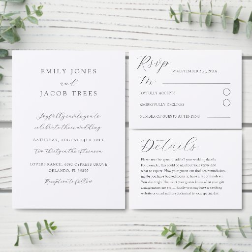 Diese einfache, moderne und minimalistische Hochzeitsvorlage zeichnet sich durch ein zeitloses schwarzes Textlayout auf einem knackigen, weißen Hintergrund mit sanft abgerundeten Ecken aus. Es ist mit einer klassischen und eleganten Ästhetik gestaltet und bietet einen gepflegten und raffinierten Look, der den Anzügen verschiedene Hochzeitstile verleiht. Diese Vorlage ist leicht an Ihre Details anzupassen und bietet eine nahtlose Möglichkeit, stilvolle, zeitlose Hochzeitsarbeit zu schaffen.